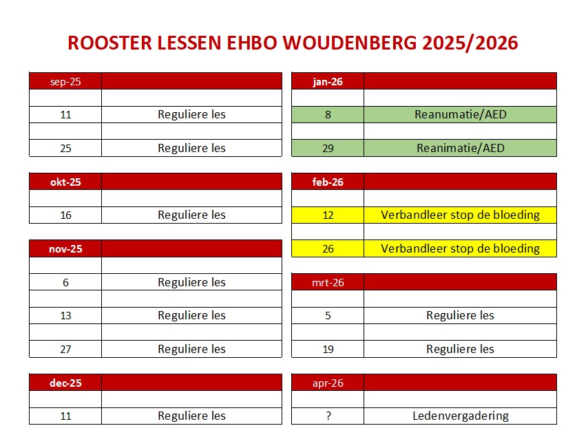 Ter info: op 25 september, 05 maart en 29 maart zullen de lessen plaats vinden in de Henschotenzaal